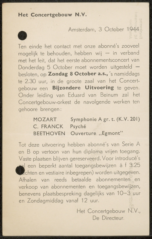 Berichtkaart van het Concertgebouw te Amsterdam