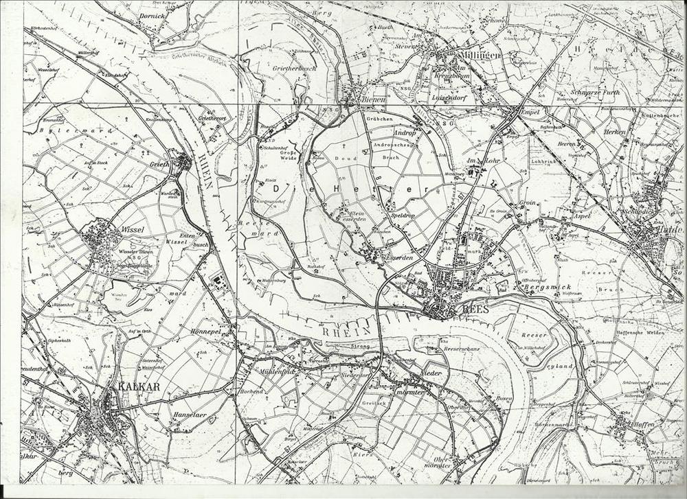 Kaart van Kalkar - Rees - Millingen