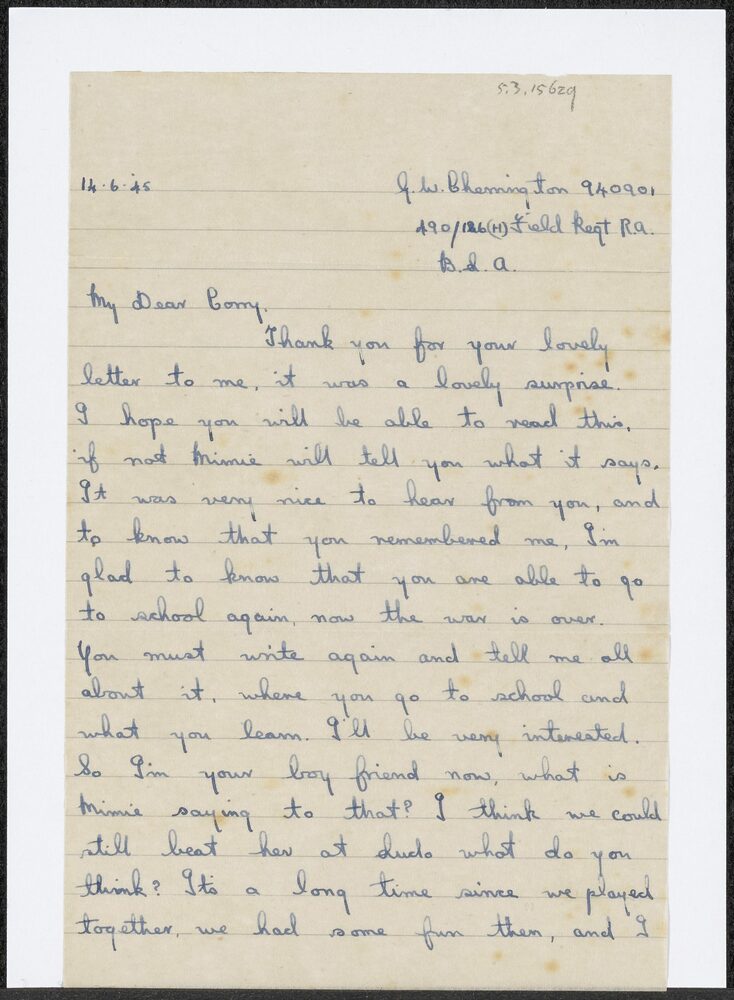 Brief van G.W. Chemington aan Corry (Knoop), d.d. 14...