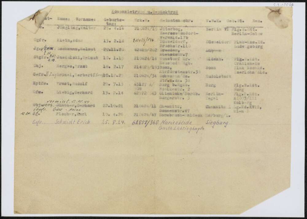 Vel met namen Duitse militairen