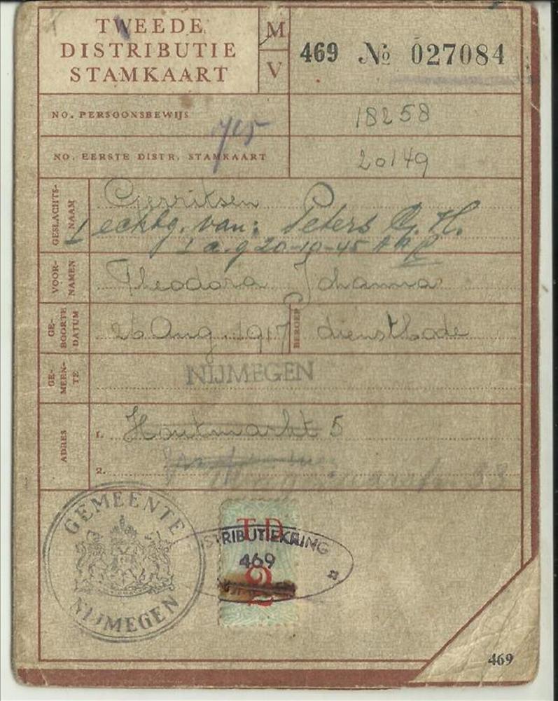 Tweede Distributiestamkaart van : Gerritsen, Theodor...