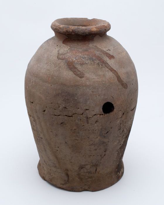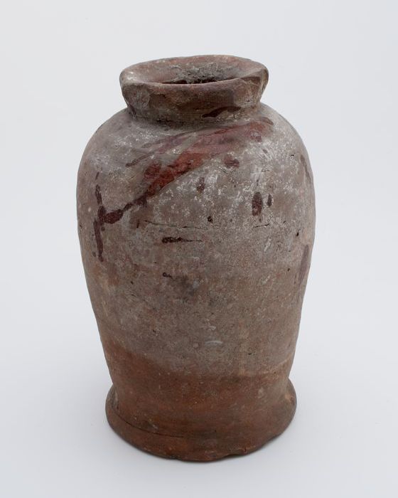 Aardewerk pot op standring, balustervorm, afkomstig ...