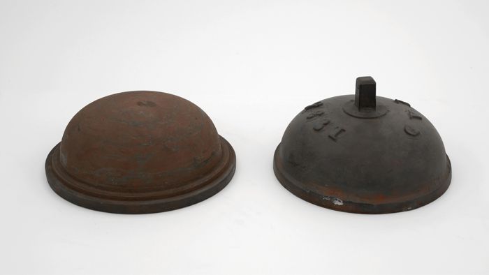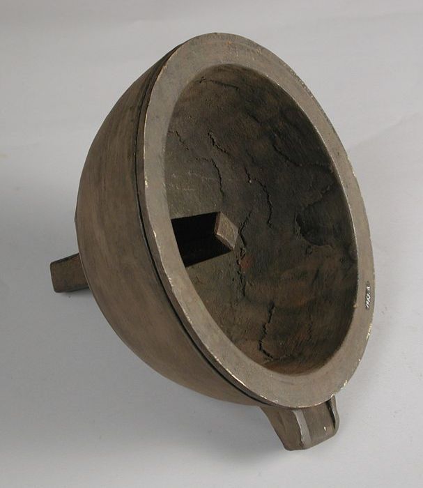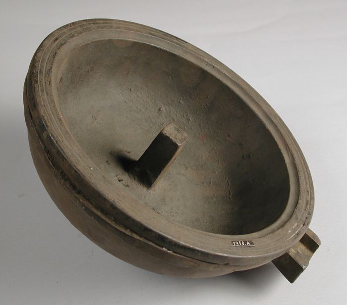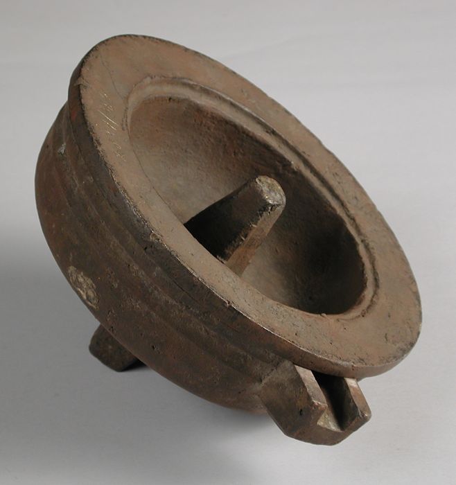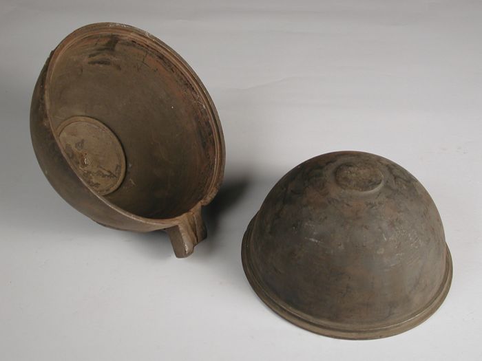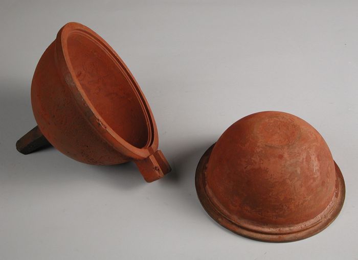 Tweedelige bronzen mal voor onderkant van pot of kan