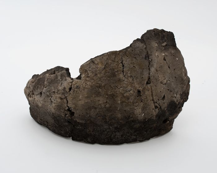 Grijze aardewerk kogelpot, vervormd misbaksel