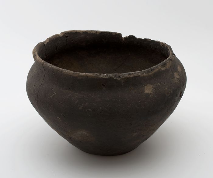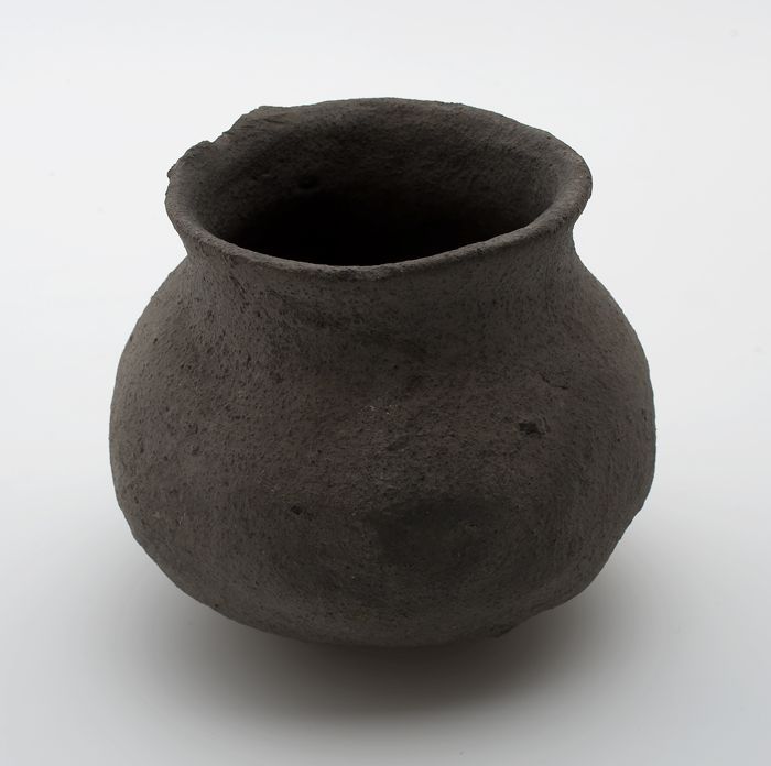 Kleine kogelpot van grijs aardewerk