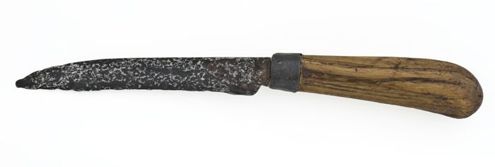 Tafelmes met licht gebogen lemmet, opschuif- (?) hef...