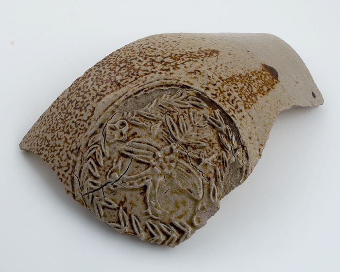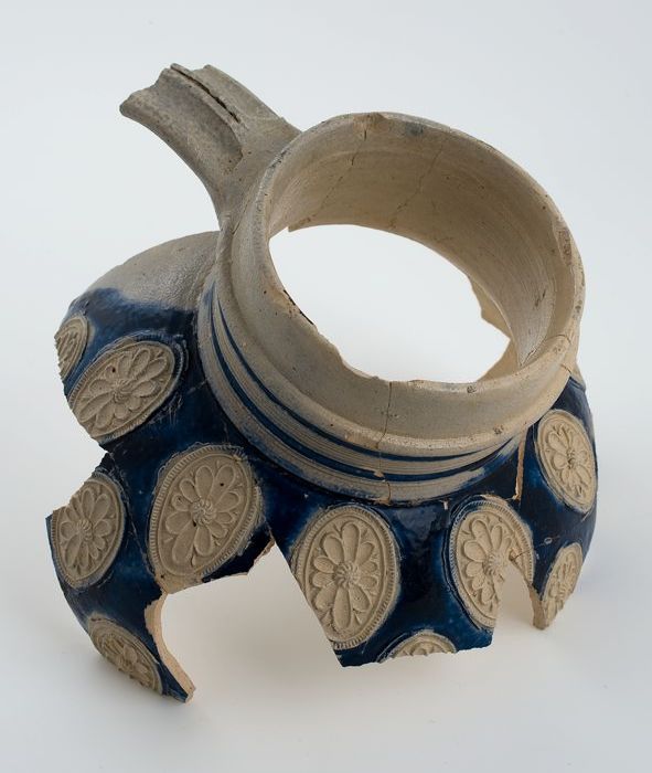 Buikfragment van baardmankruik, steengoed, met rond ...