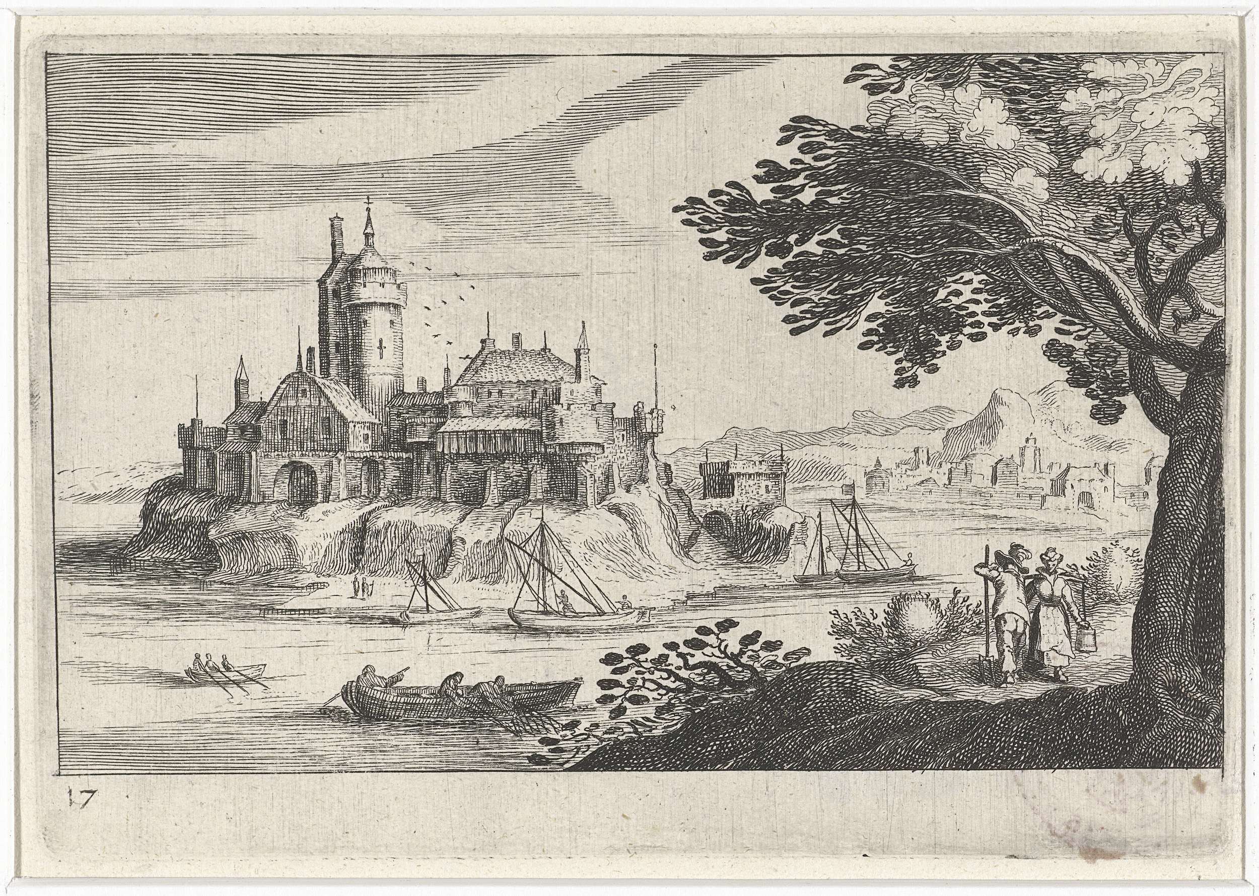 Rivierlandschap met een kasteel