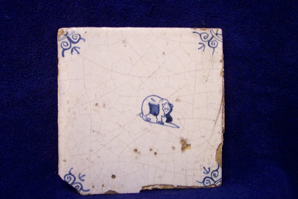 Tegel van keramiek in transfer-techniek en deels ges...