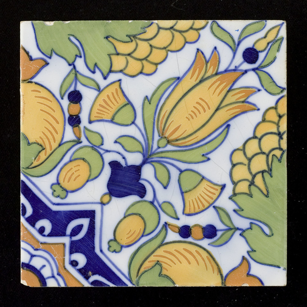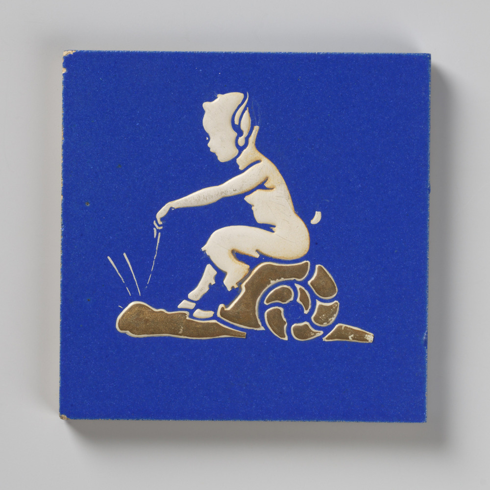 tegel van keramiek, gesjabloneerd, voorstellende: or...