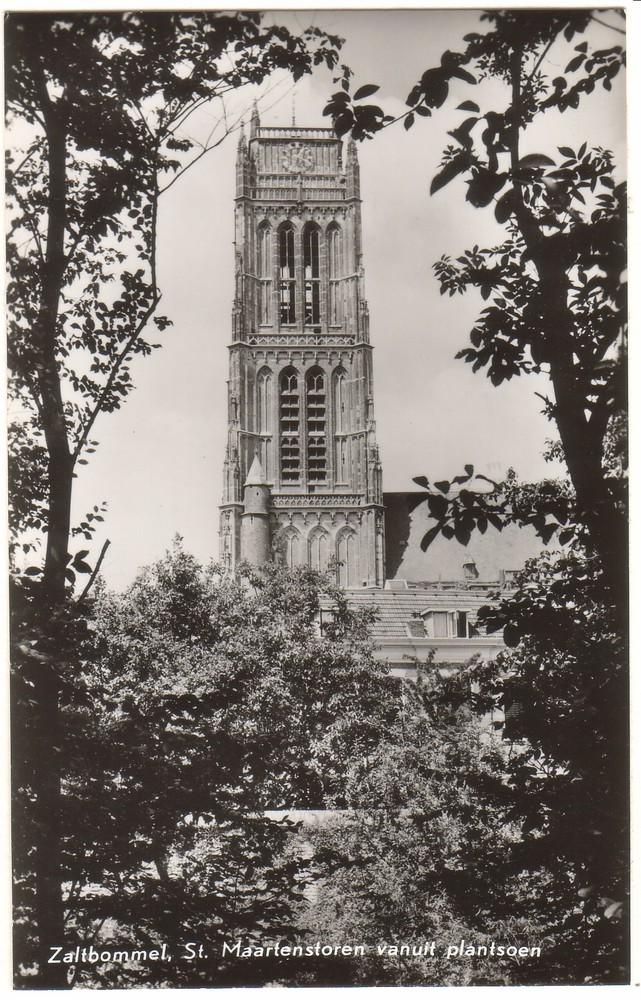 Zaltbommel, St, Maartenstoren vanuit plantsoen.