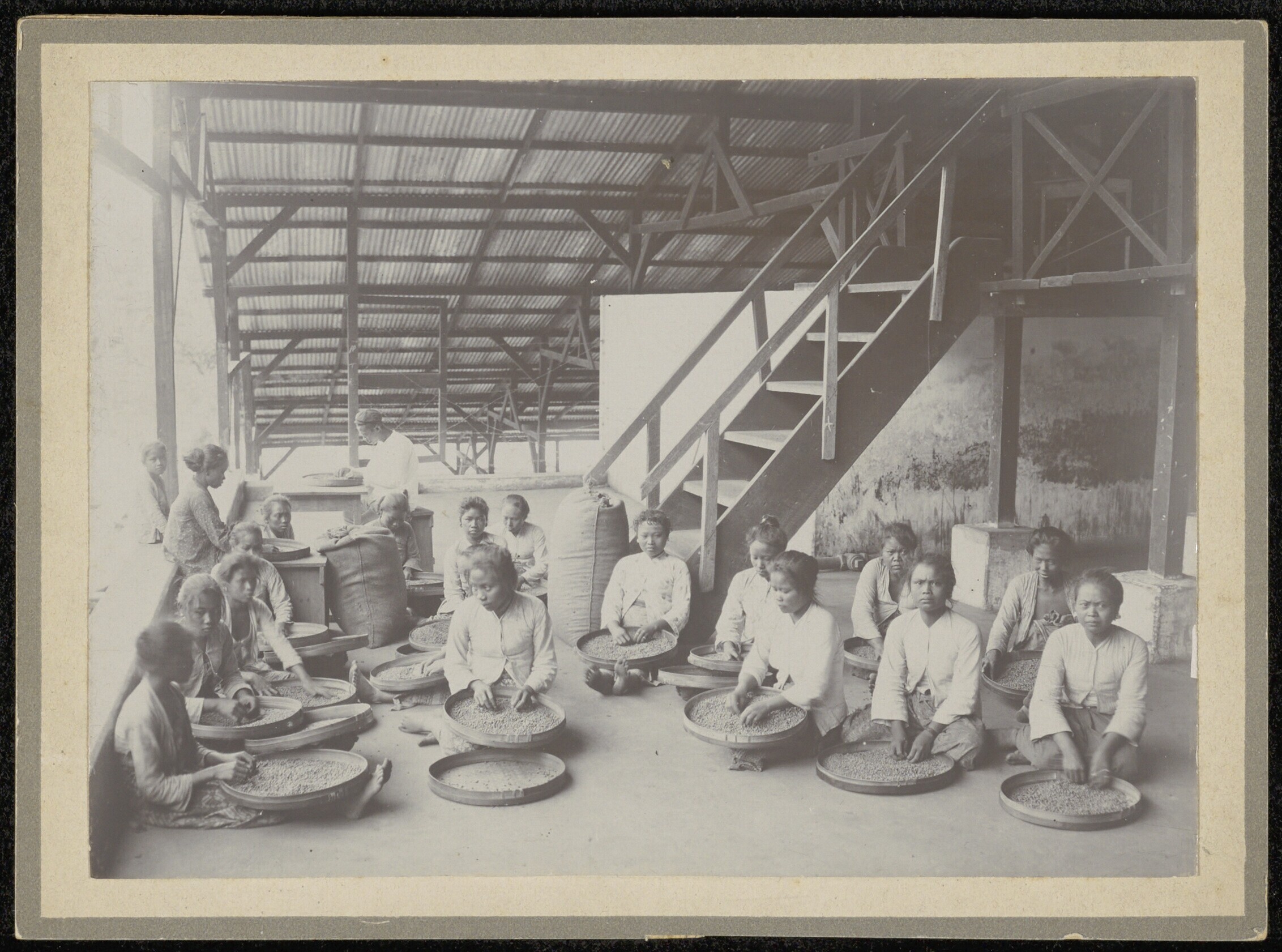 Het sorteren van koffie door Javaanse vrouwen in een...