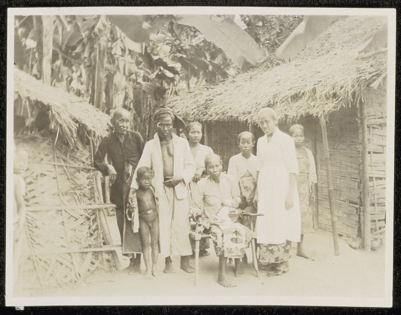Javaanse arbeiders en kinderen poseren met een Europ...