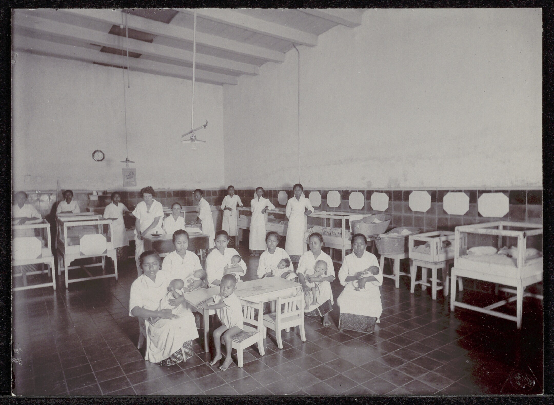 Portret van verpleegkundigen met bevallen vrouwen en...