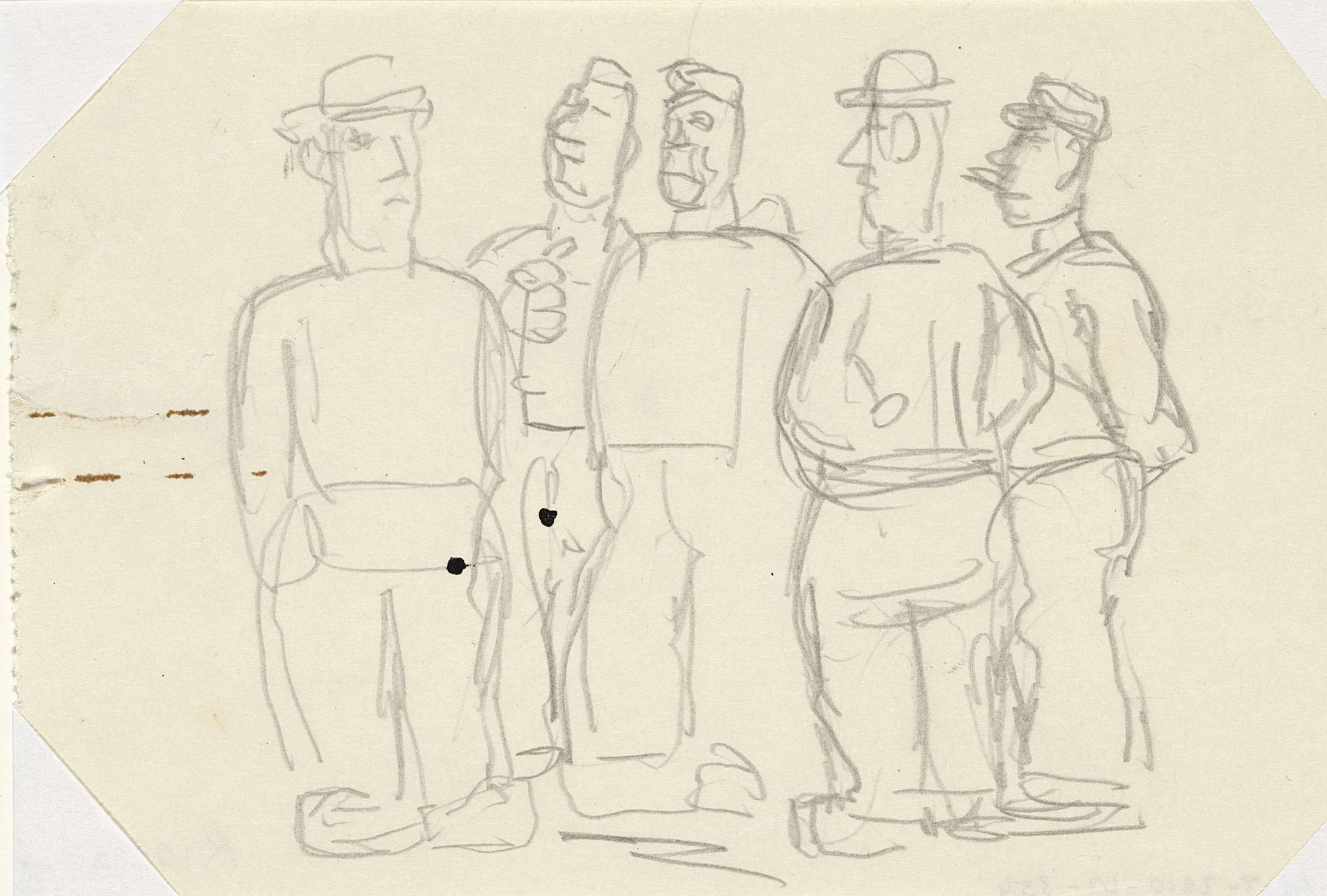 Potloodschets van vijf Spakenburger vissers