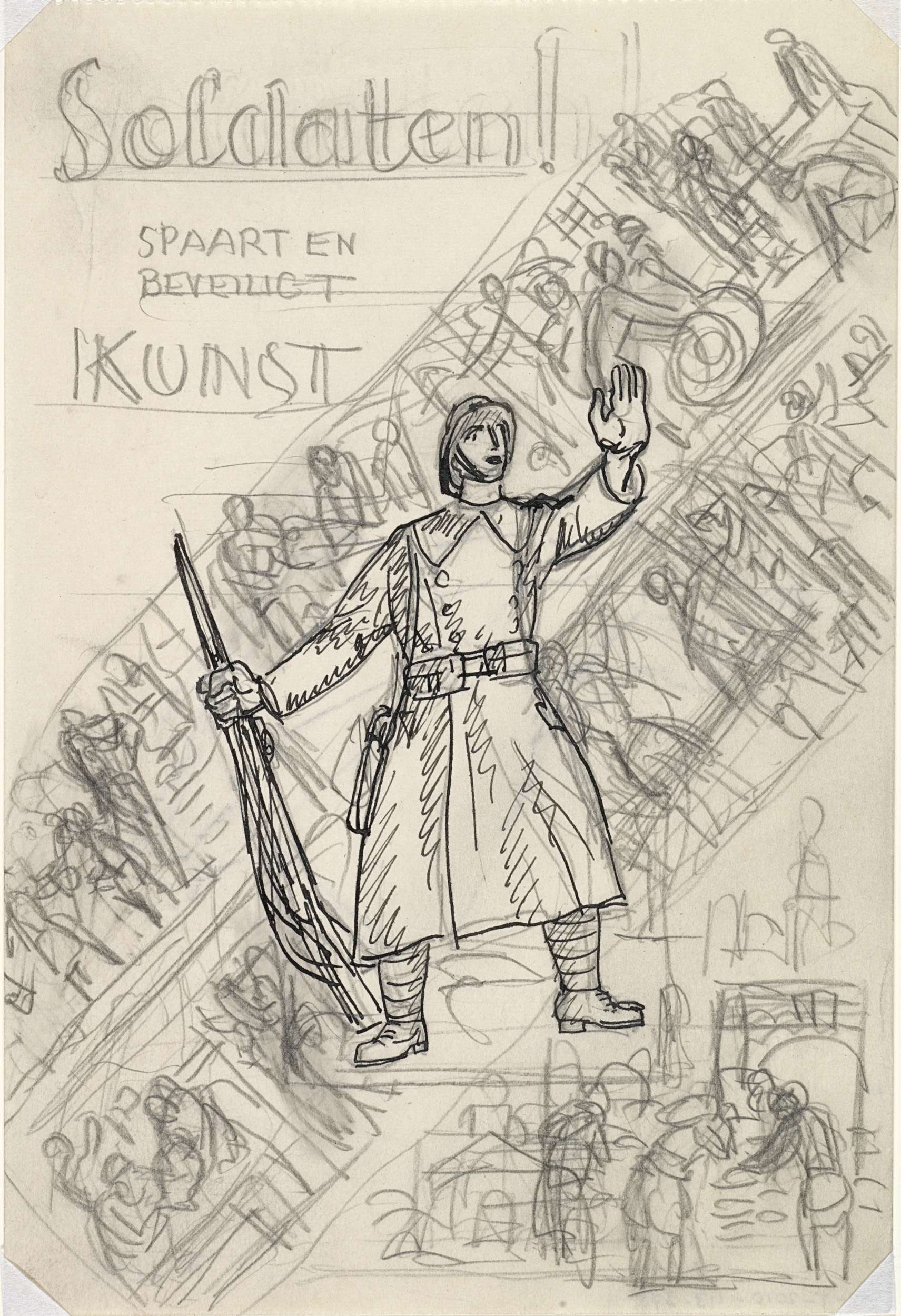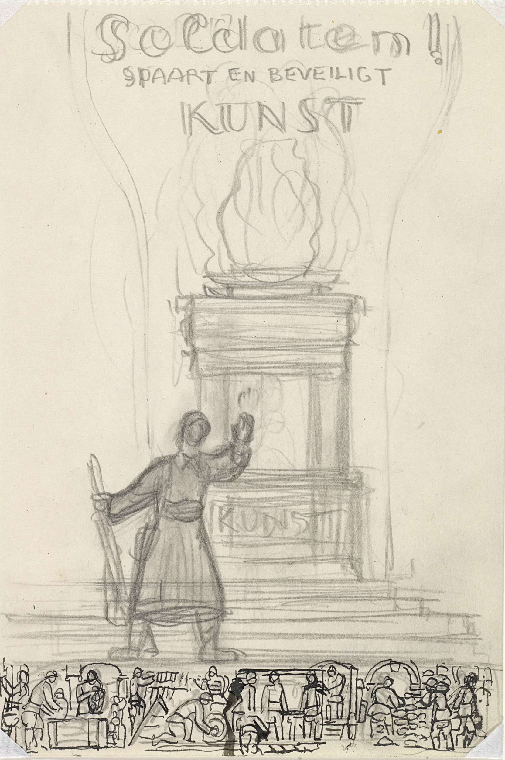 Schets voor 'Soldaten! Spaart en beveiligt kunst'