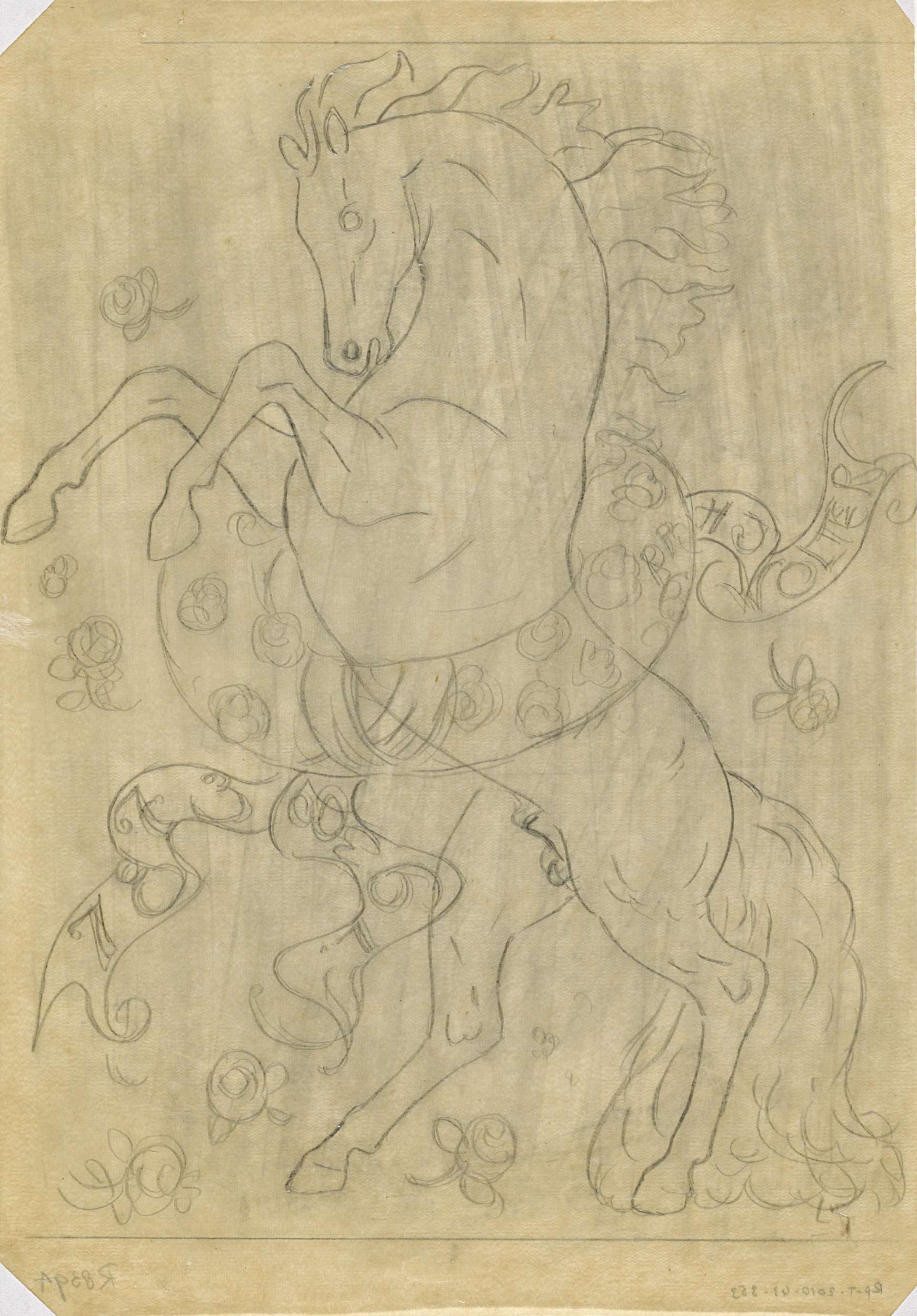 Zonder titel Steigerend paard met decoratieve bloeme...
