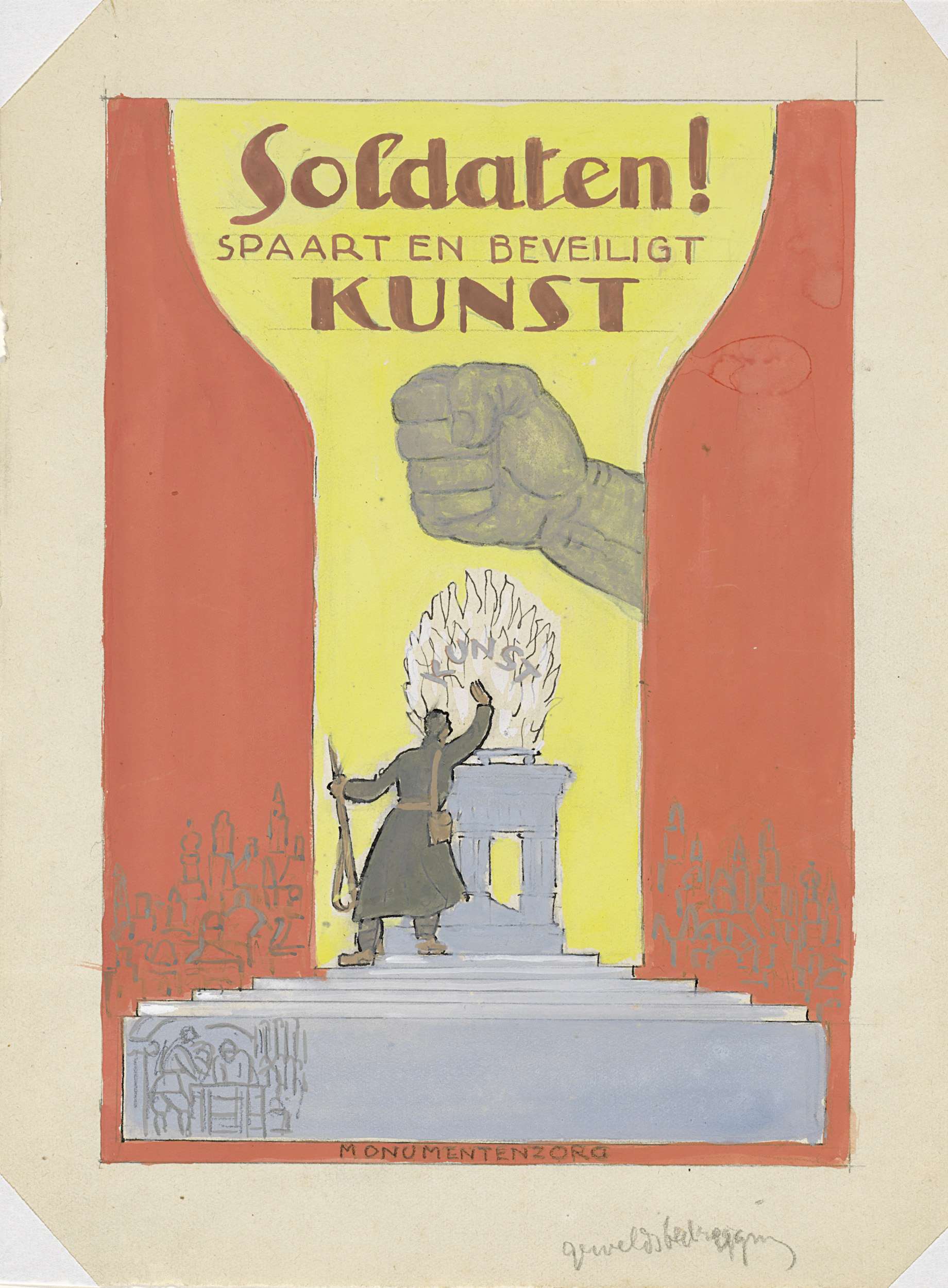 Ontwerpschets affiche voor propaganda kunstbeschermi...