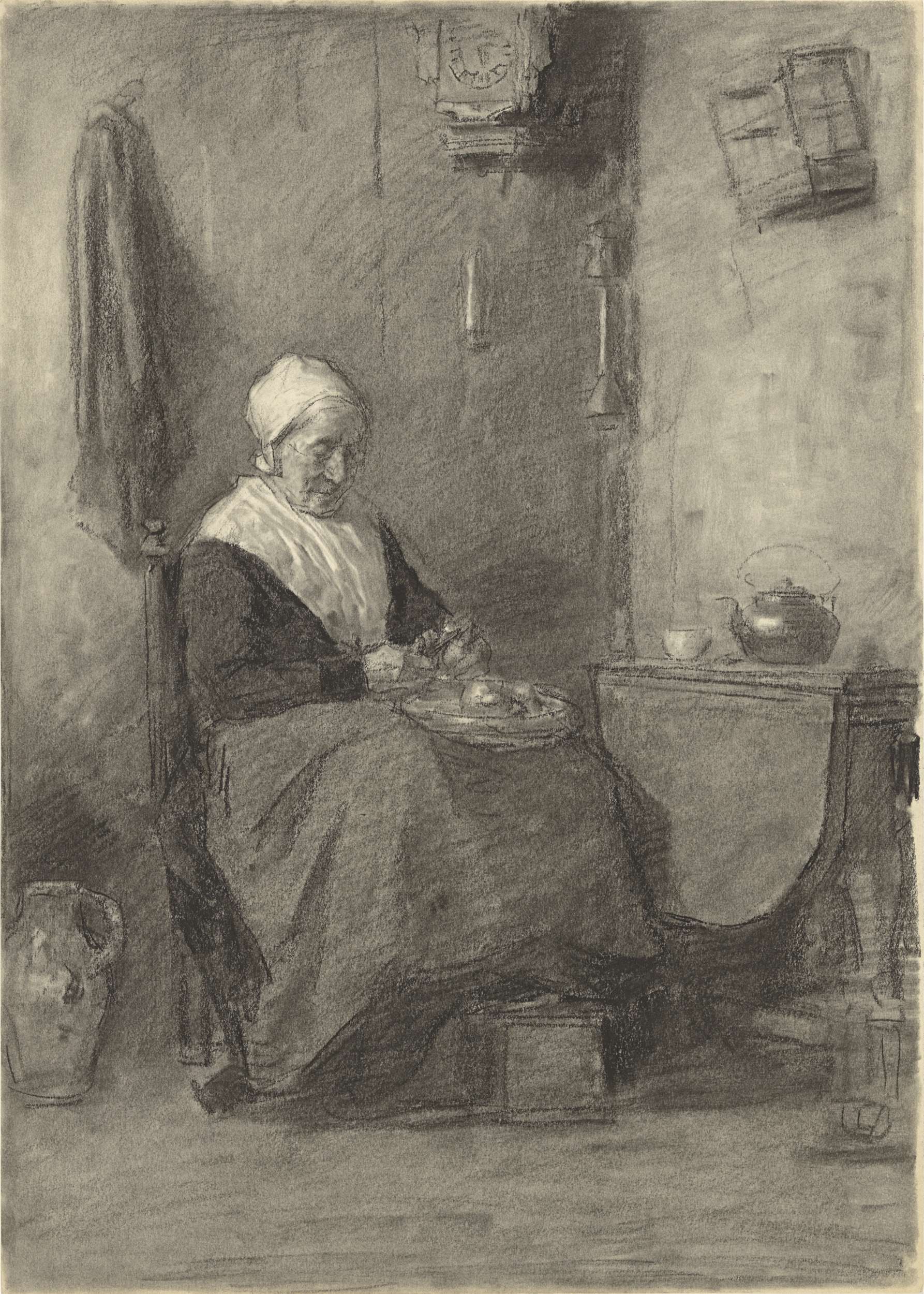 Boerenvrouw in interieur
