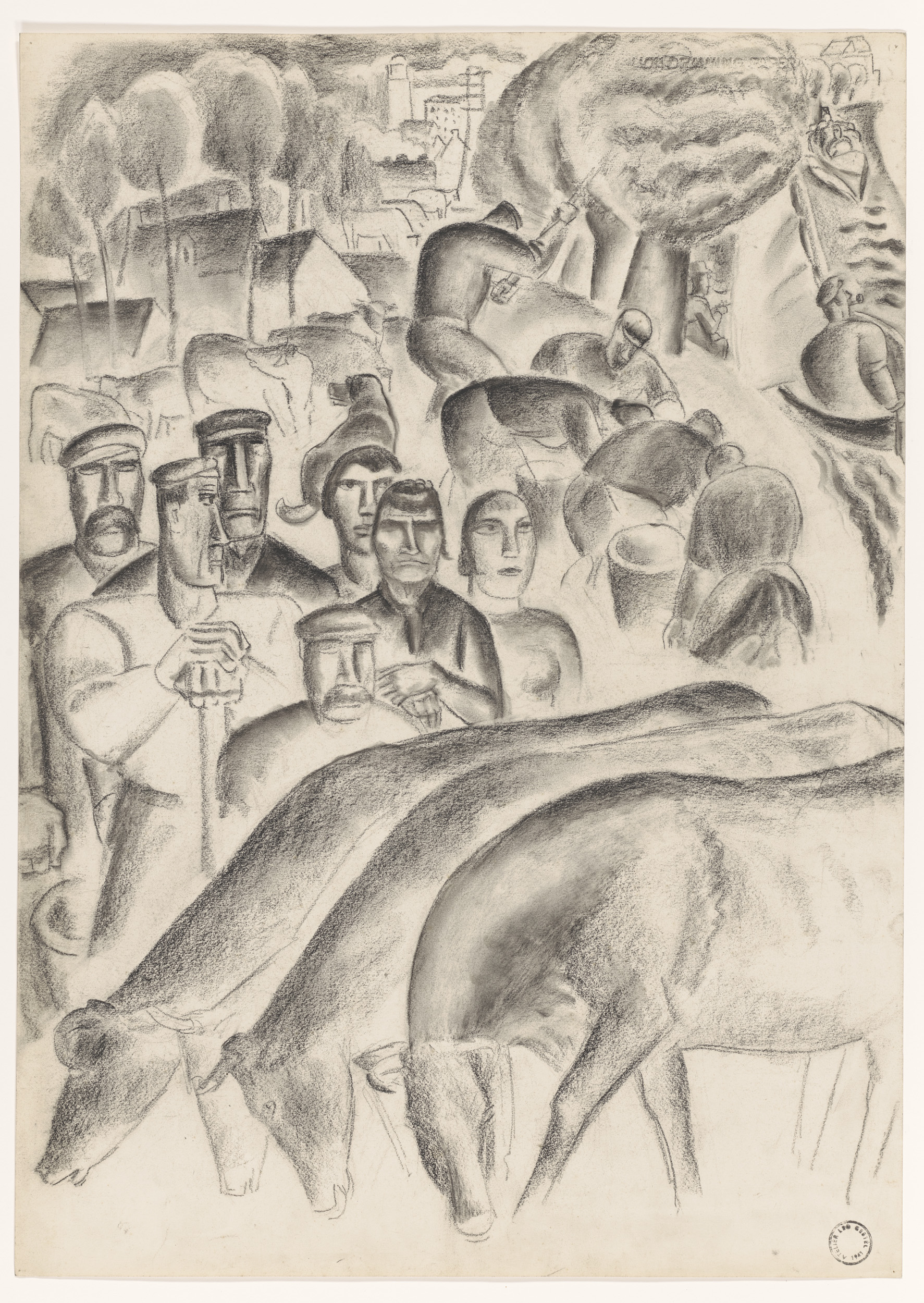 Studies van ezels en een muildier op de Grote Markt ...