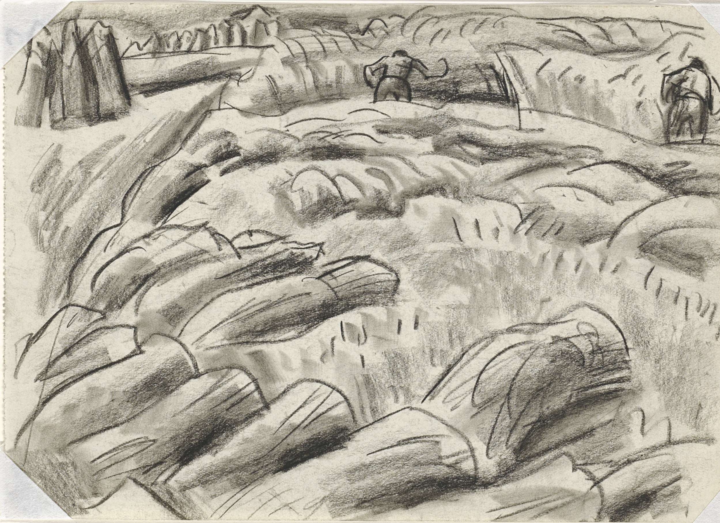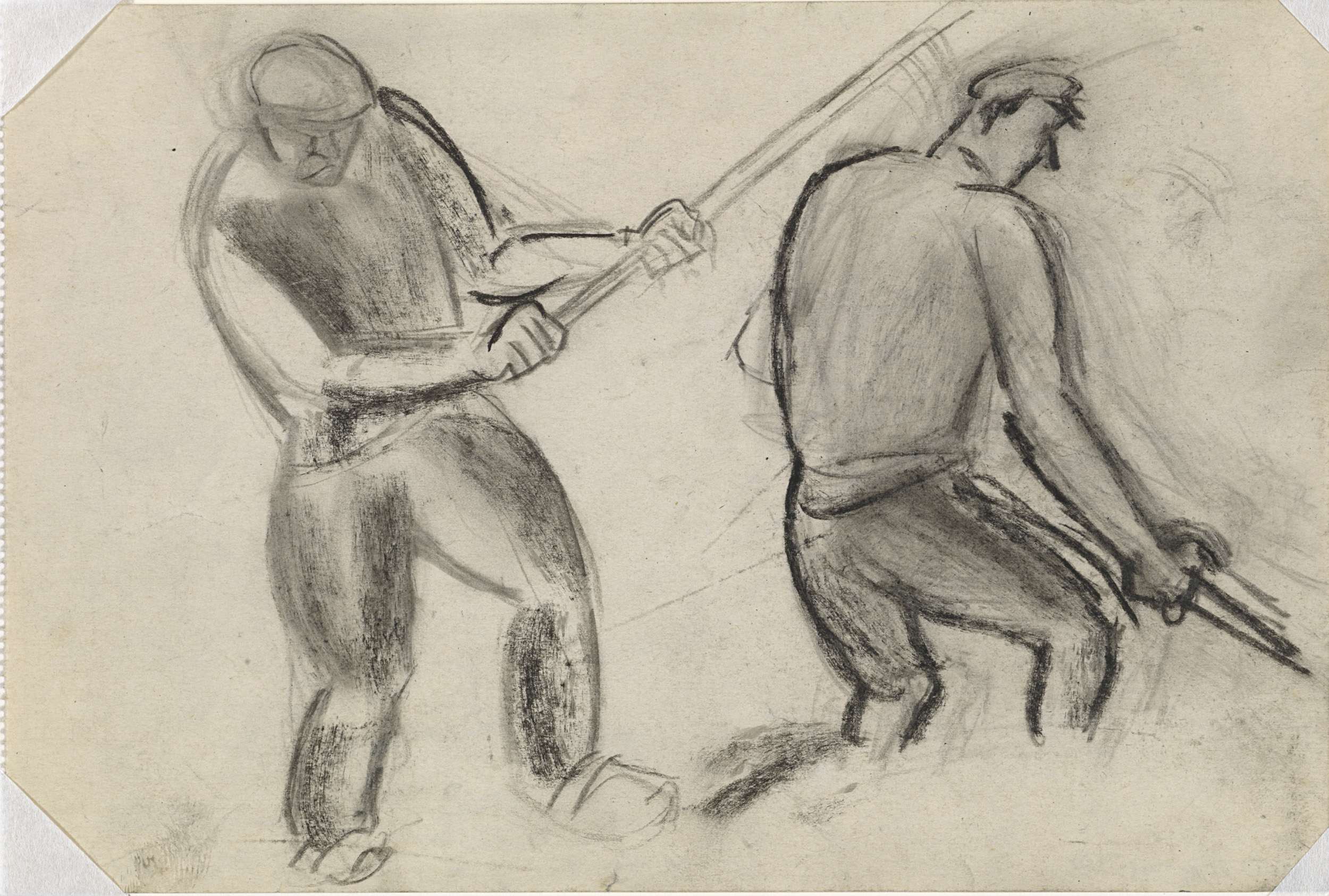 Zonder titel Schets van twee boeren aan het werk