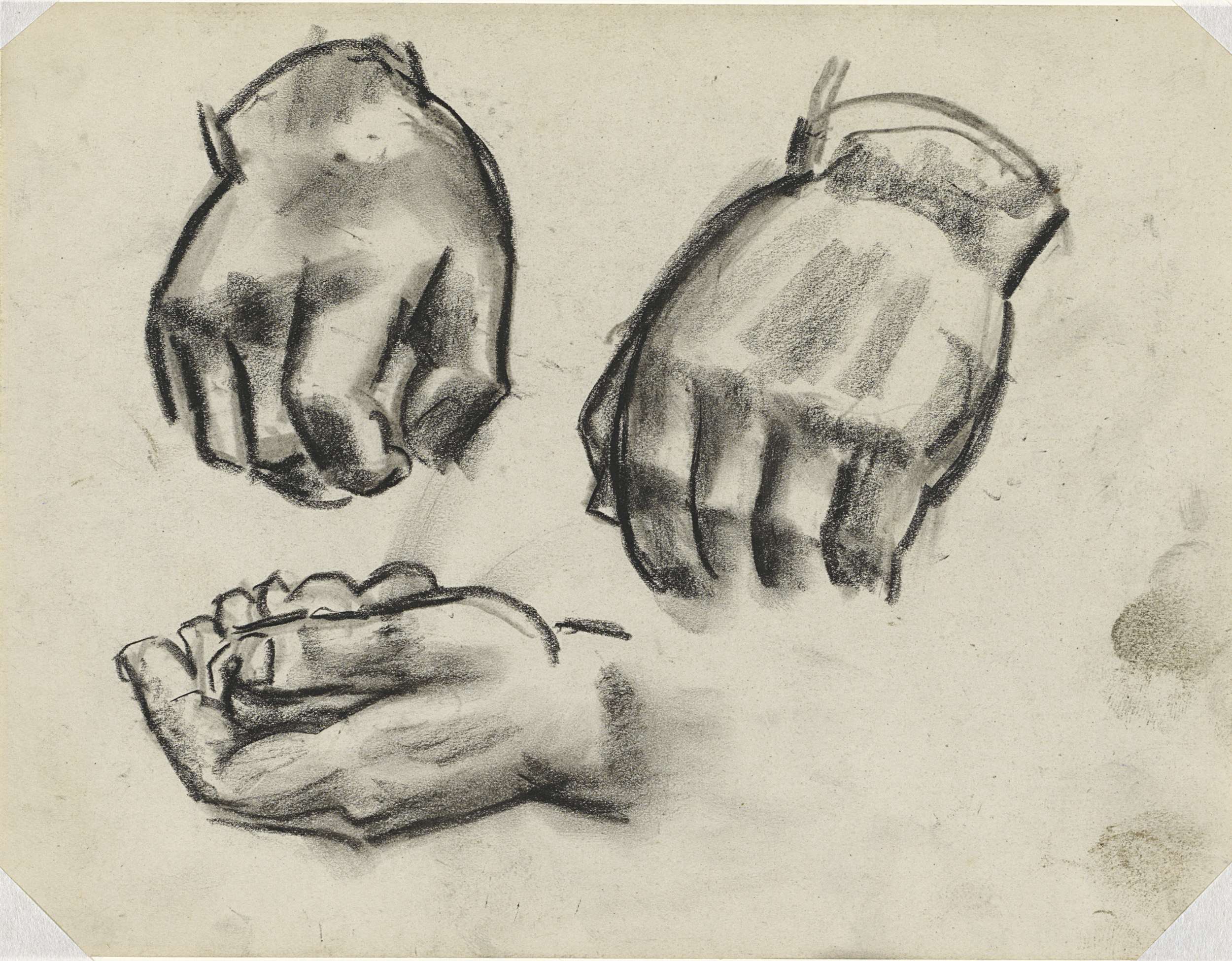 Blad met drie studies van handen