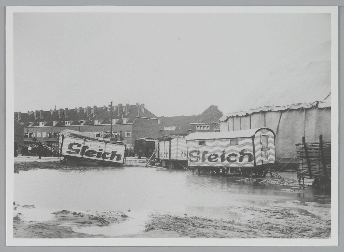 Bij het winterkwartier van Circus Van Bever. Ong. 1950