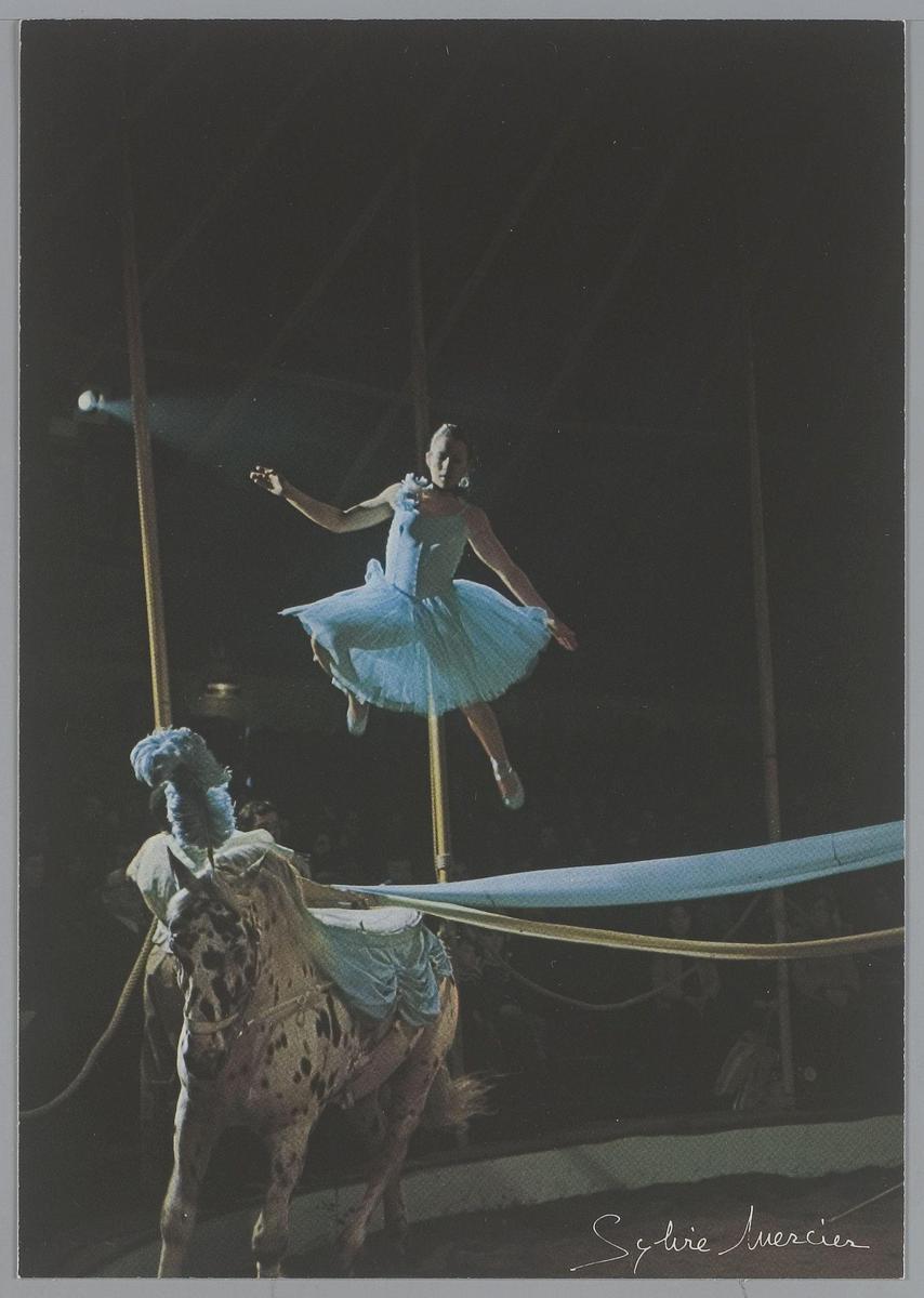 Le Cirque. Martine Gruss. Ecuyère a panneau, saut de...