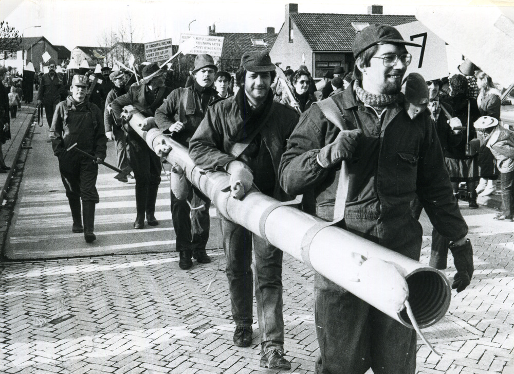 Zwart-wit foto van de Carnavalsoptocht in Lobith 1986