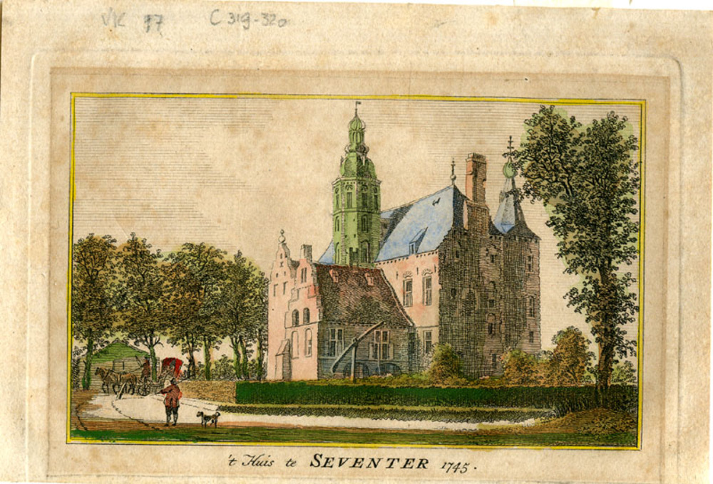 Ingekleurde prent van 't Huis te Seventer op papier ...