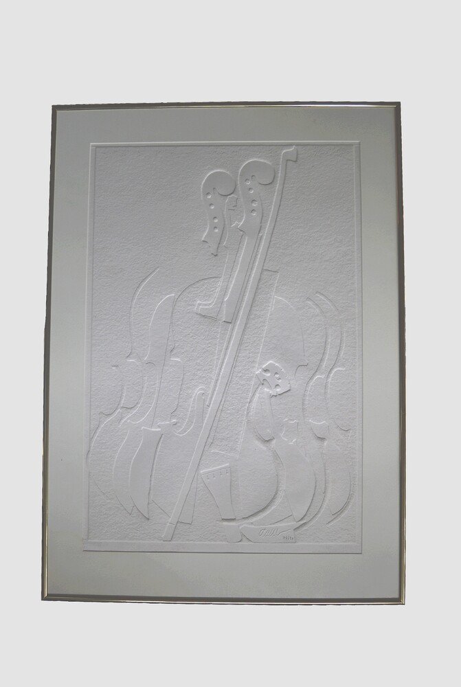 Ingelijst kunstwerk in blinddruk van geschept papier...