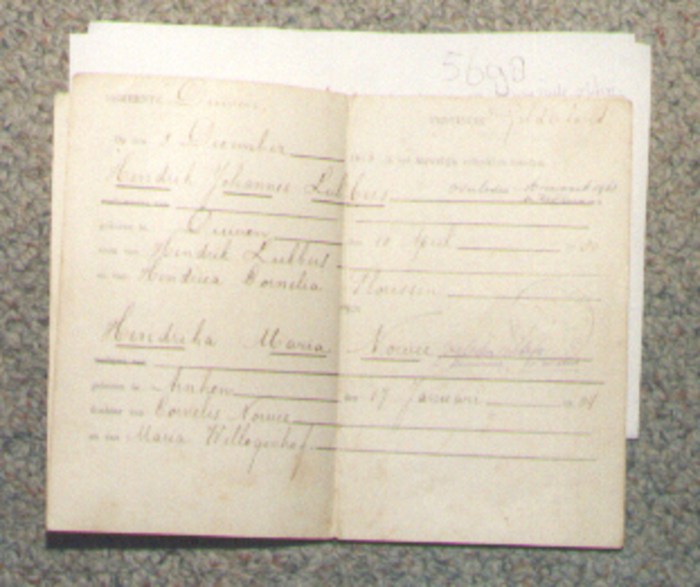 Trouwboekje van papier en karton 1913