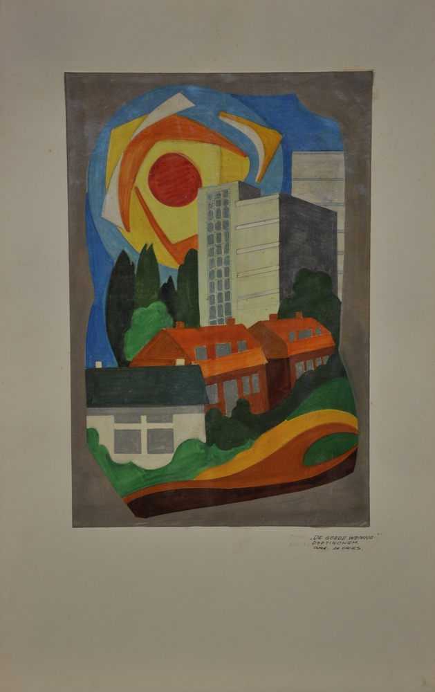 ontwerptekening op papier van waterverf voor 'De Goe...