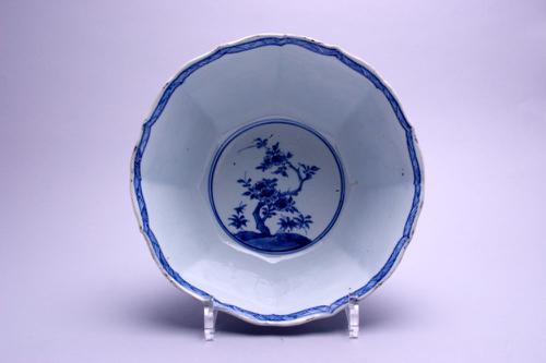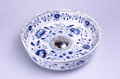 Delftse onderschotel gedecoreerd met rocailles en bl...