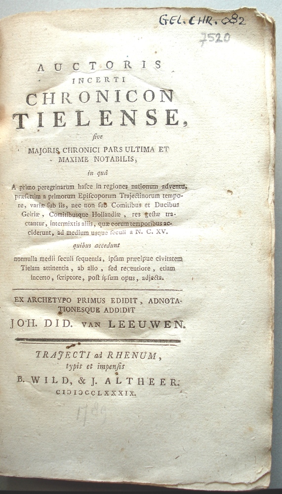 Auctoris Incerti Chronicon Tielense, sive Majoris Ch...