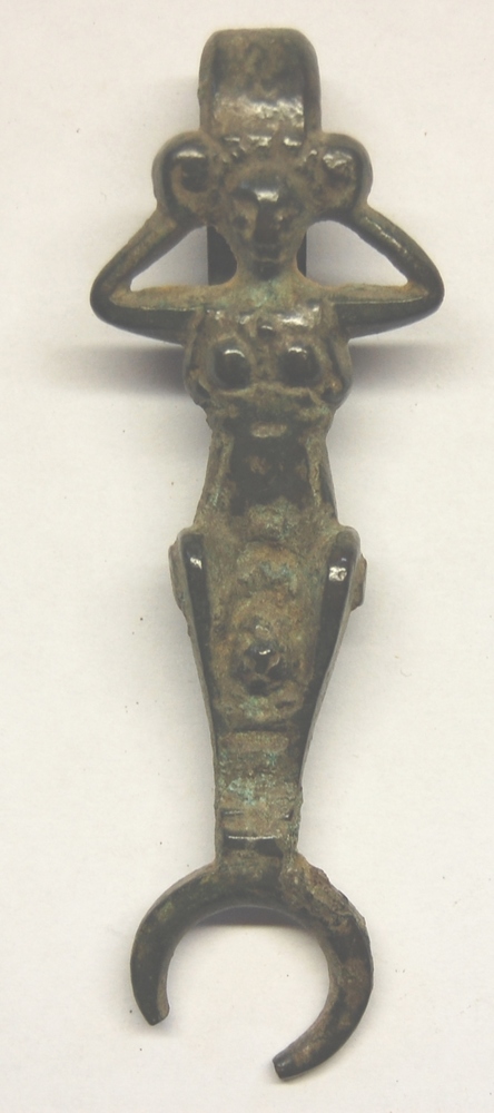 tasgesp van brons in de vorm van vrouwelijk atlanten...