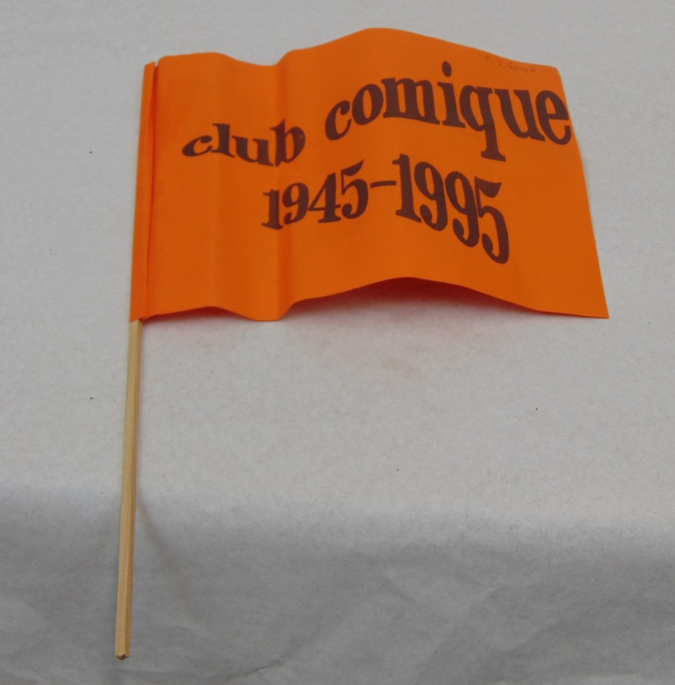 Vlag: Papieren vlaggetje, oranje papier met opschrif...