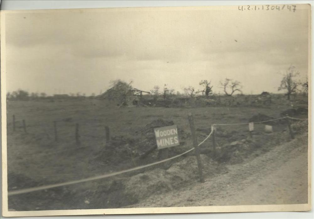 bord 'Wooden mines', Hoge Horst, Groesbeek, april 1945