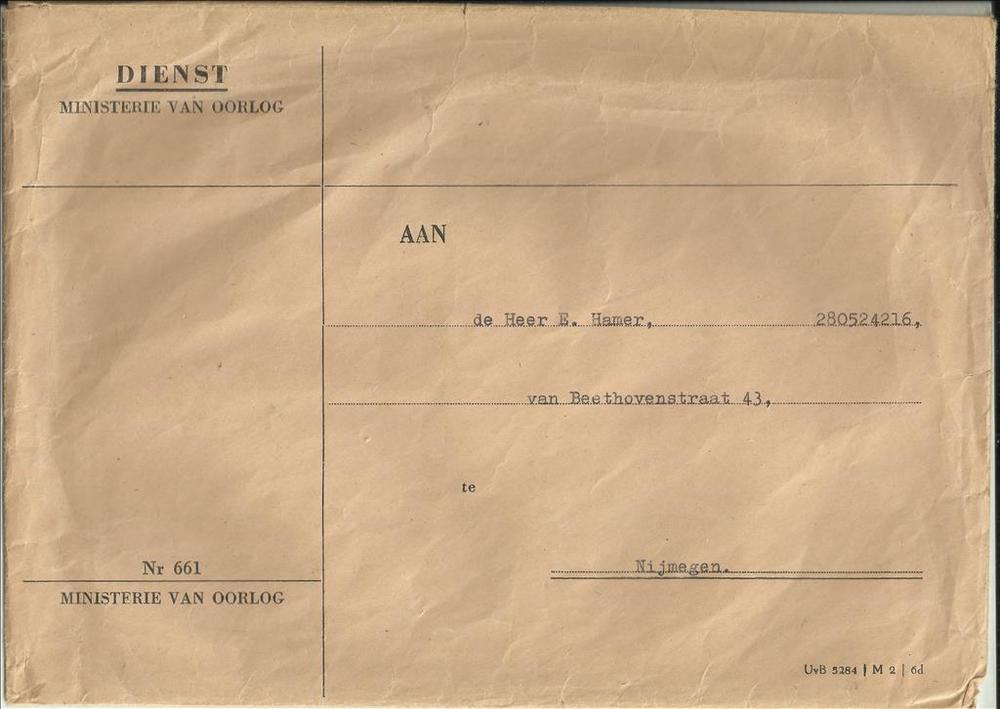 Aan dhr E. Hamer te Nijmegen van Dienst Ministerie v...