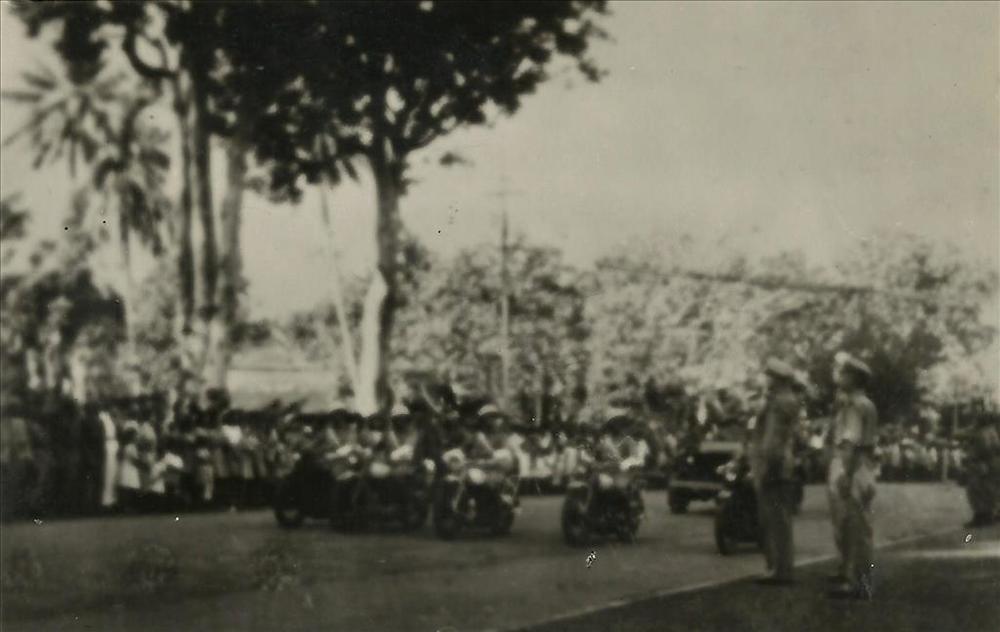 Ned. Indië na WO 2; parade, militair voertuig, isnpe...
