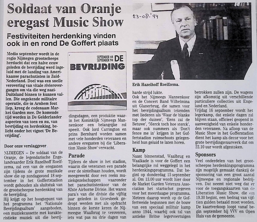 Soldaat van Oranje eregast Music Show. 23-08-1994