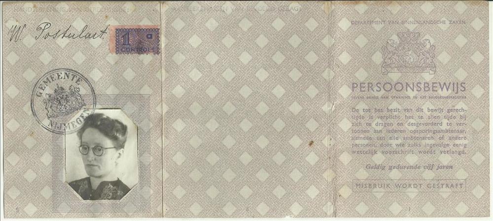 Persoonsbewijs op naam van Postulart, Wilhelmina Hen...