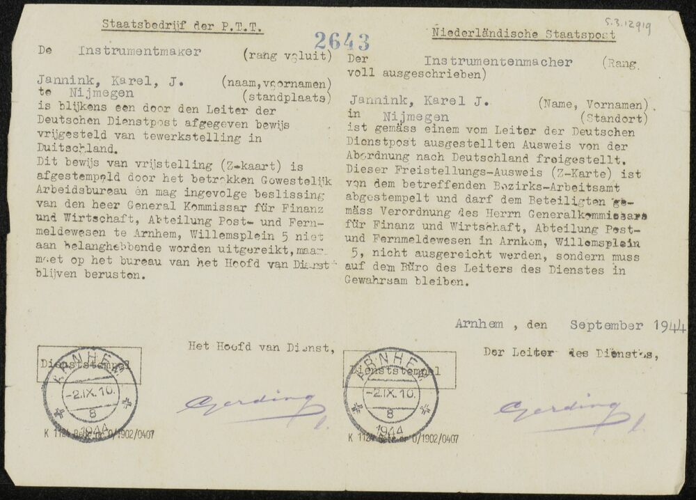 Directeur-Generaal van den Arbeid - 15 september 194...