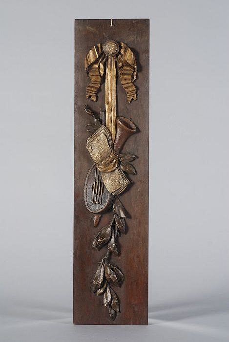 Gesneden houten guirlande, bestaande uit luit, muzie...