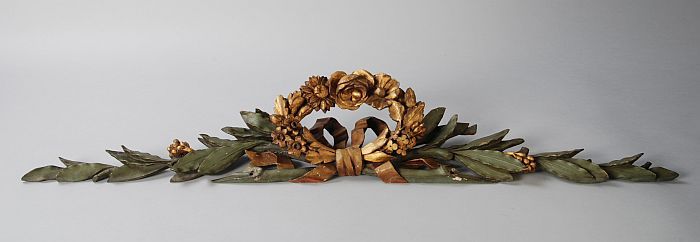 Ornament met in hout gesneden laurierbladeren, in he...