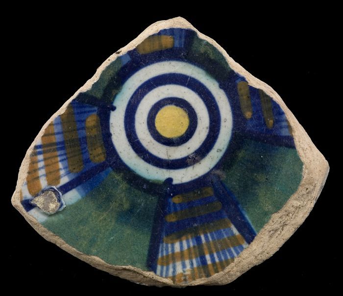 Fragment majolica albarello, zalfpot, polychrome banden
