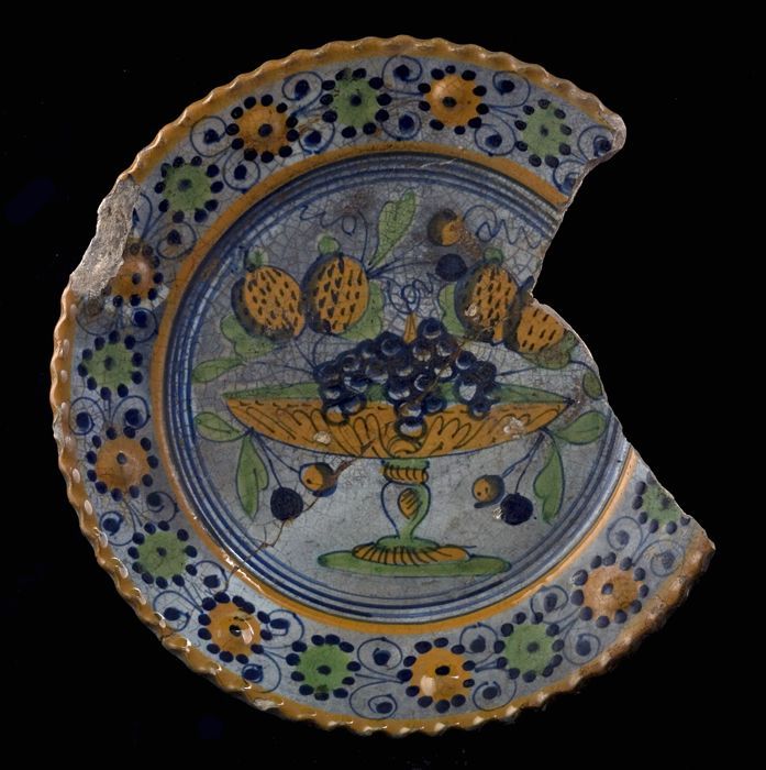 Fragment majolica schotel, polychroom, appels of gra...