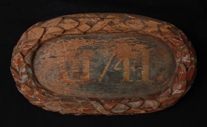 Ovaal bol paneel met "Ao 1741", in omlijsting van ge...