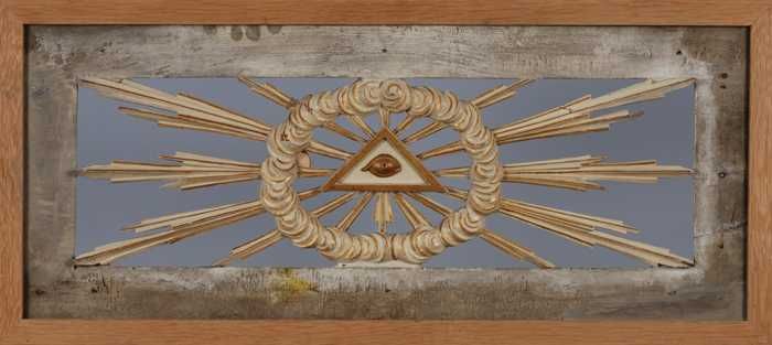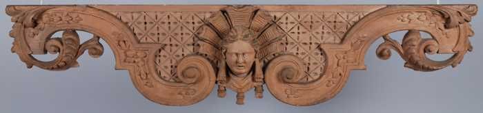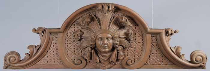 Gebeeldhouwde houten gevelversiering voorstellende e...