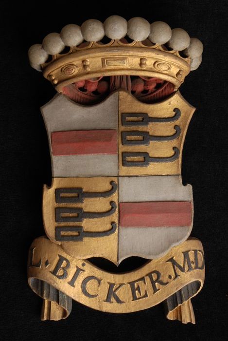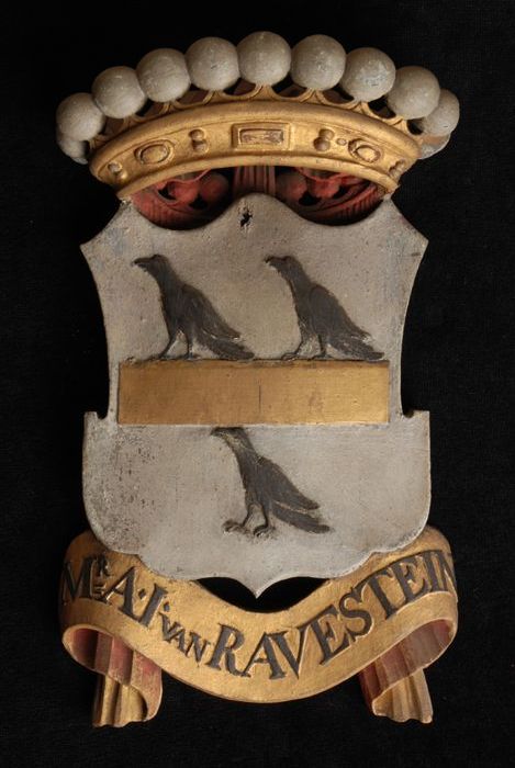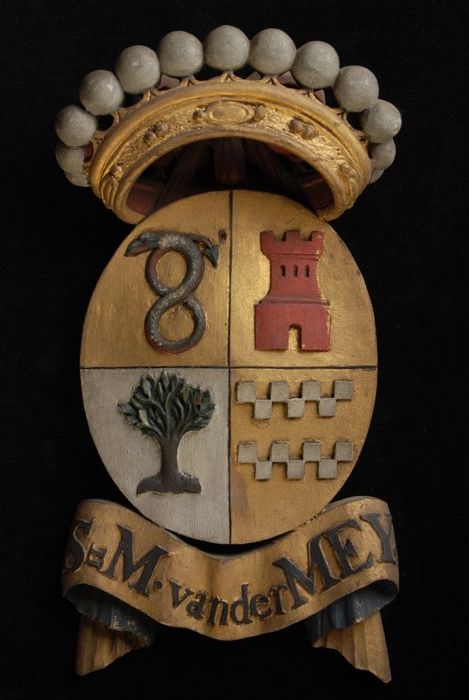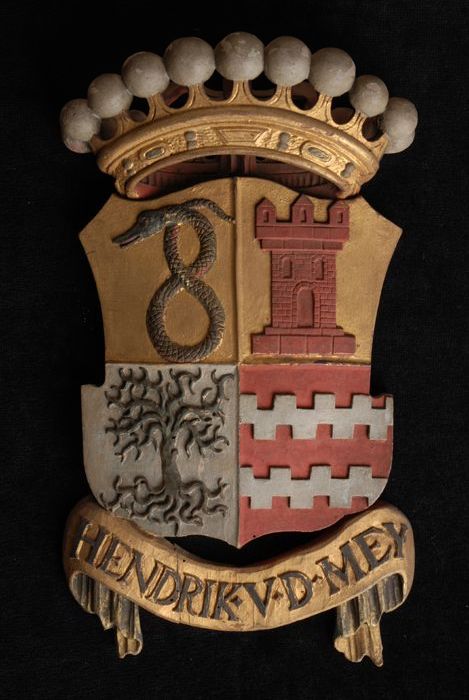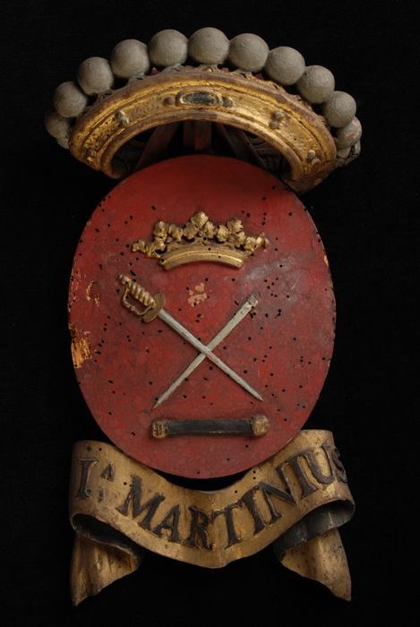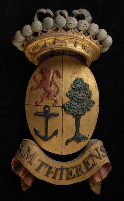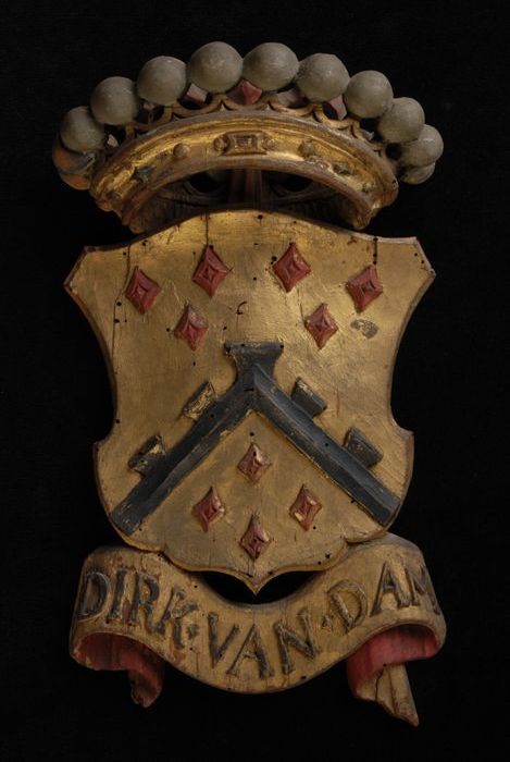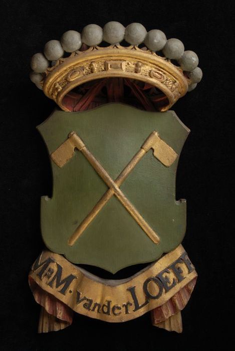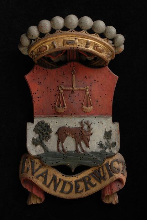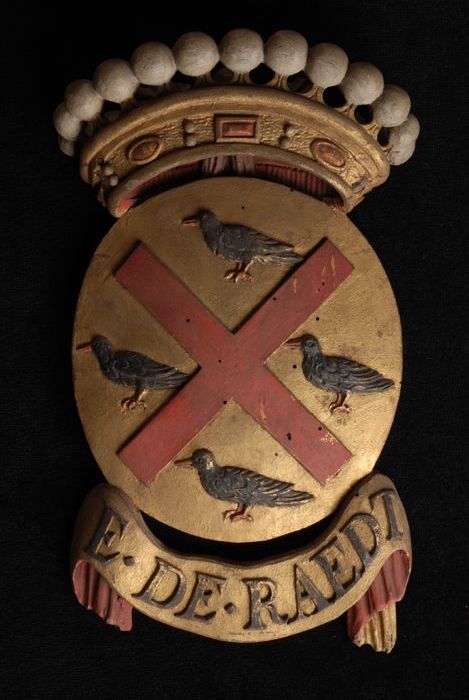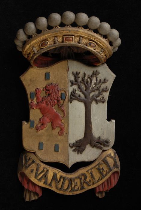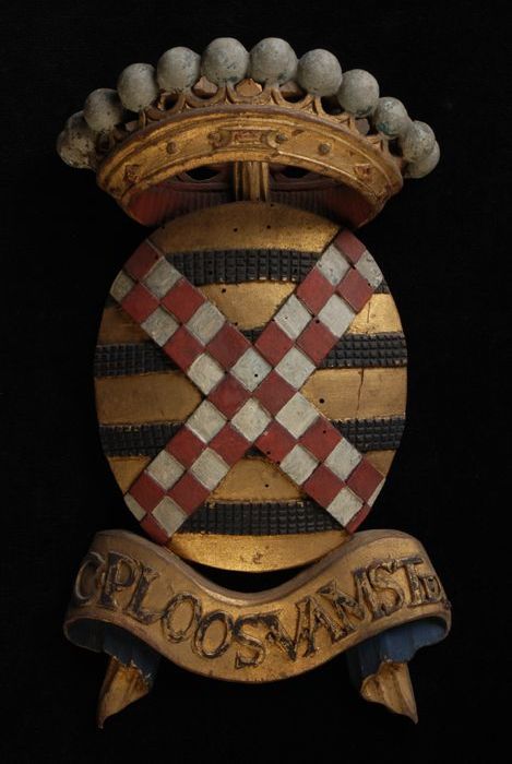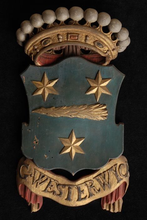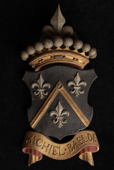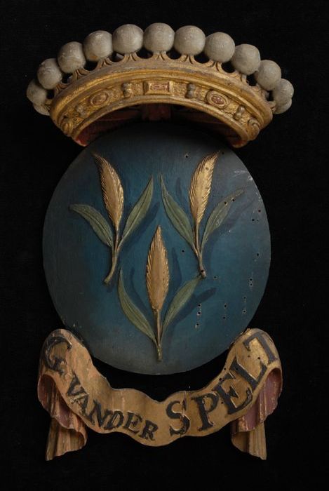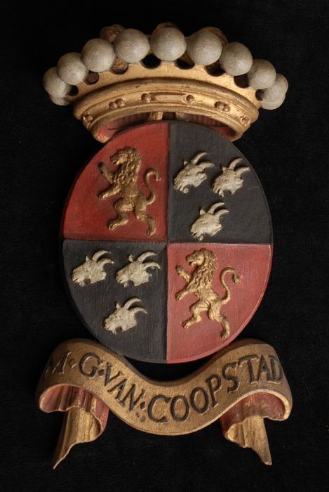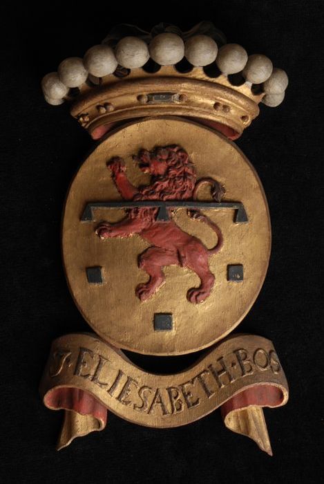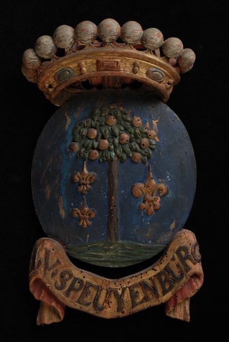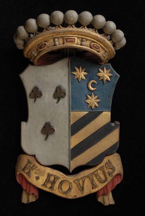 Gesneden houten ornament met vier gekroonde wapensch...